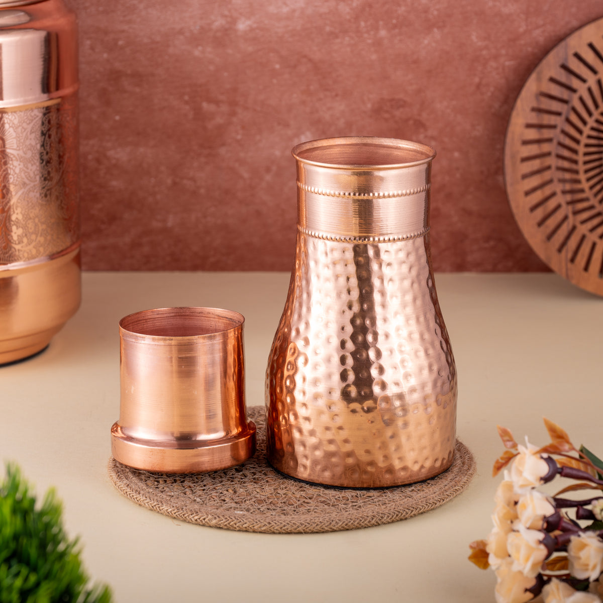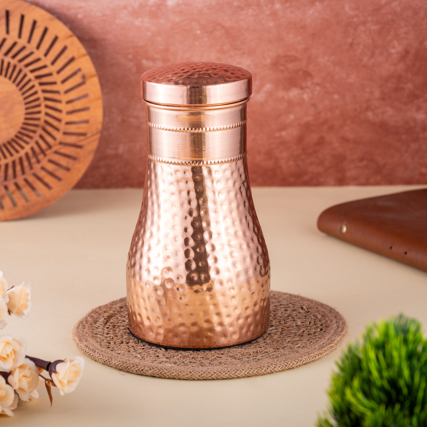 Made from pure copper, this hammered jar is the perfect blend of tradition and elegance. The set includes a 1-litre copper, all shaped in a classic cylindrical design. The hammered finish not only enhances the look but also gives a rich, luxurious feel every time you pour.