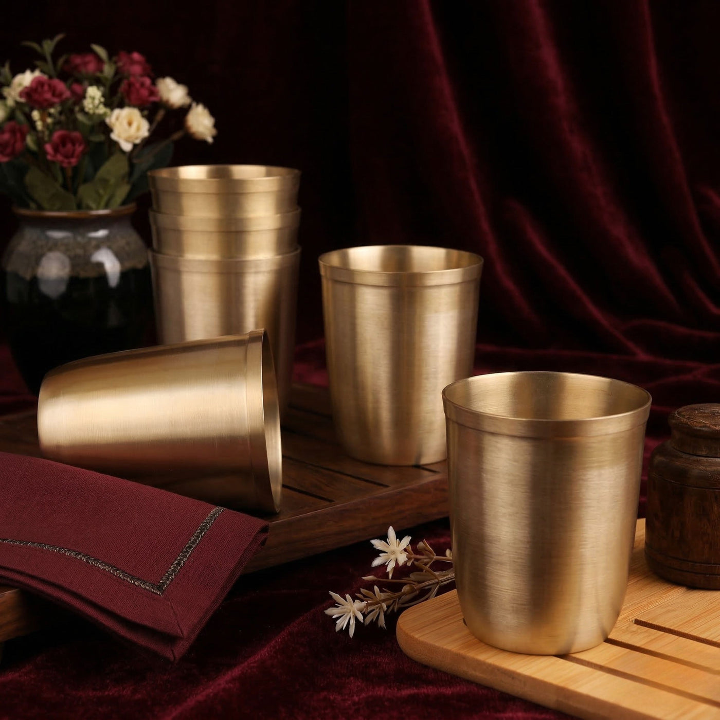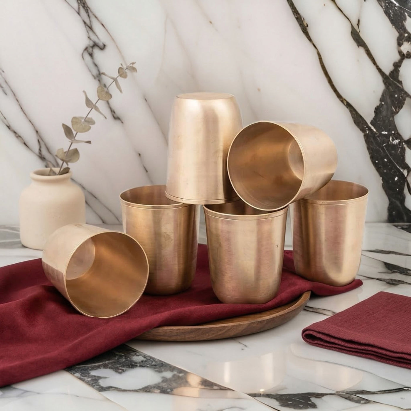 CLASSIC DESIGN & BENEFITS FOR HEALTH – Our Matte finished bronze glass set of 6 Pcs made of classic durable design and utilitarian that is perfect for serving any liquid or dry food. According to Indian science of Ayurveda, Kansa utensils has huge benefits to health while serving food in Kansa like improving the immune system, regulates the body requirement of copper, strengthens bones, helps to cure constipation, support hair growth and more.