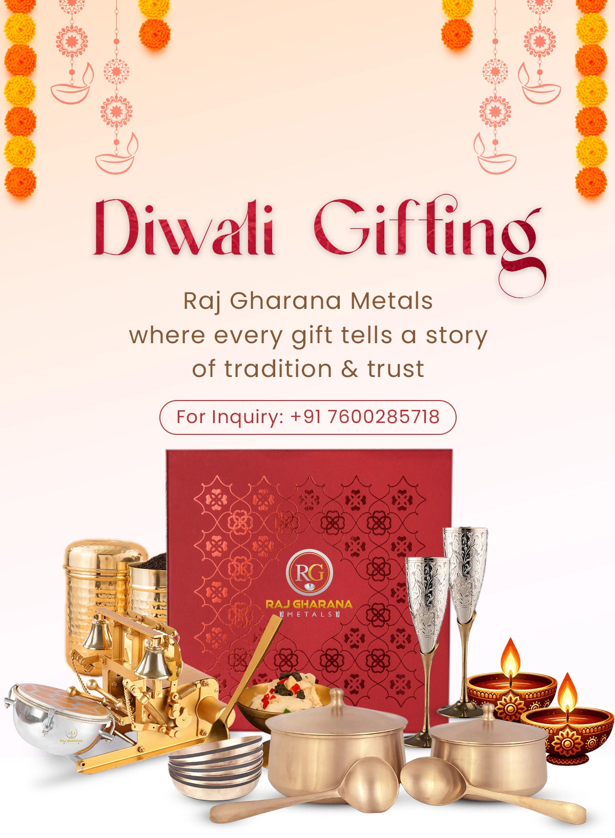 Kansa Handi Dinner Set | 6 Pcs - 1 Platter Dai 12 inch, 2 Bowl (Katori), 1 Sweet Dish, 1 Glass(Tumbler), 1 Spoon