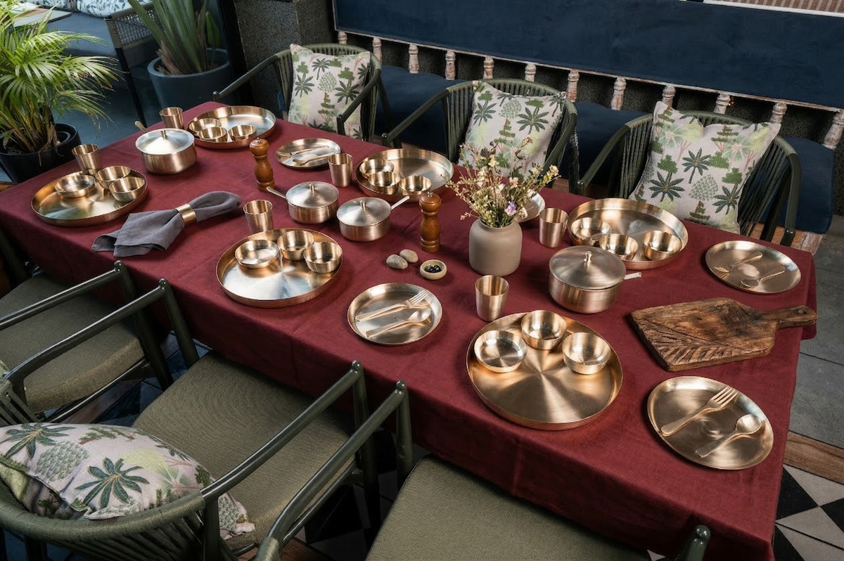 HANDCRAFTED KANSA DINNER SET - Raj Gharana Metals forging Pure bronze utensils and bronze kitchenware items from years of generations, Our Indian handmade bronze dinner set has been crafted by very skilled and professional artisans which is highly durable and corrosion and stain resistant. It is ideal for daily usage to serve any hot, solid or liquid food, dishwasher safe.